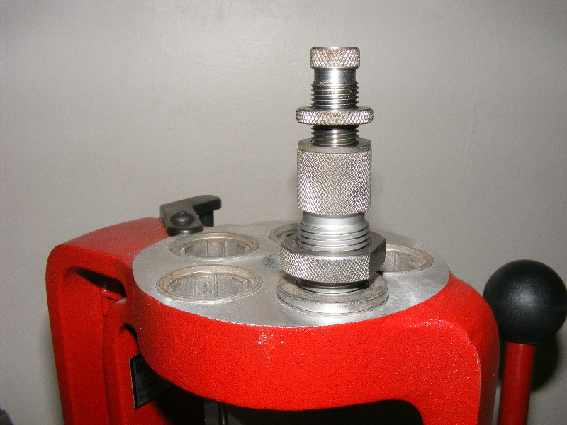 To begin, screw the die into the press. Unscrew the body as far as it will go without falling out, and then unscrew the bullet seating screw as far as you can as well. Notice this die has a lock ring on the bullet seating screw. When locked, it keeps your AOL fixed during the loading session. If you've ever wondered why your AOL varies during a session, or between the start and the finish, your die most likely does not have a lock ring there.