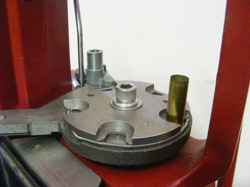 Put an empty case on your shellplate, in the correct position for the bullet seating die.
