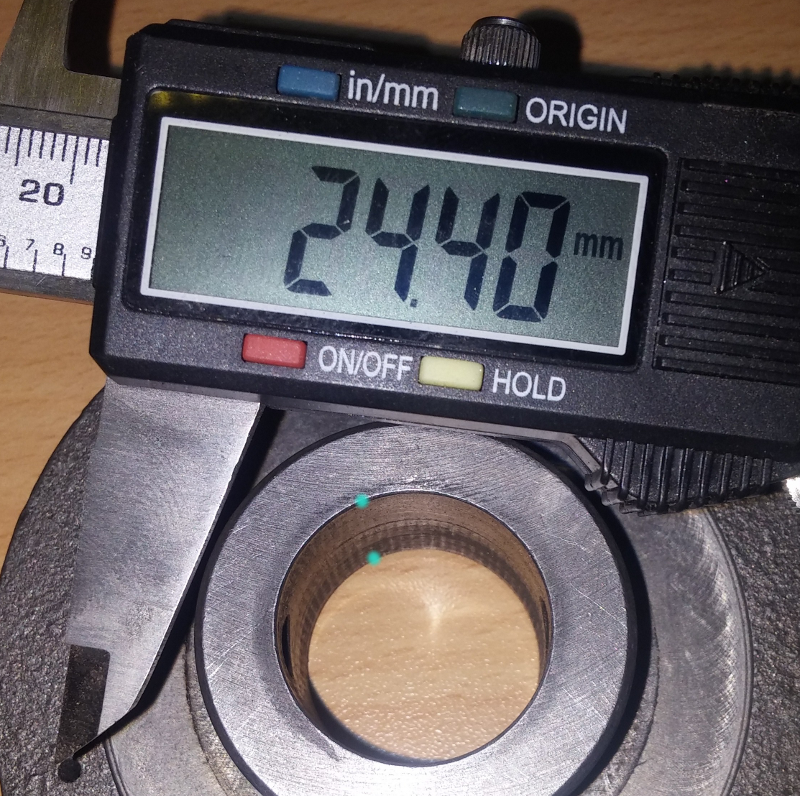 The variation of the critical dimension on these drive hubs is 0.18 mm. This 0.18 added to the possible 1.16mm brings the overall to 1.34mm, which is nearly double the 0.7mm height of the original ejector. Because the shellplate is flush against the drive hub, it cannot be tightened further, and the gap between the shellplate and the ejector can not be reduced.