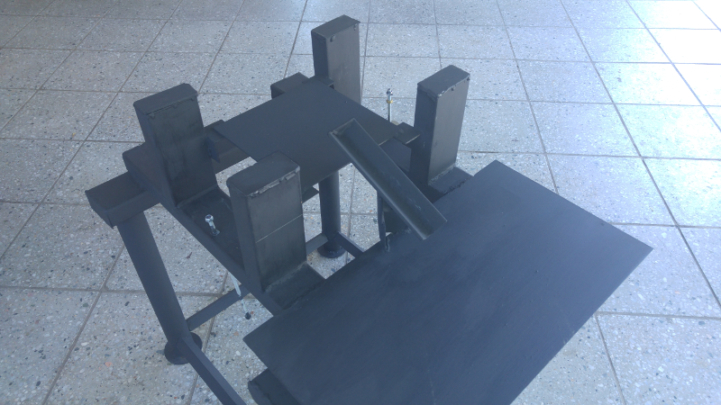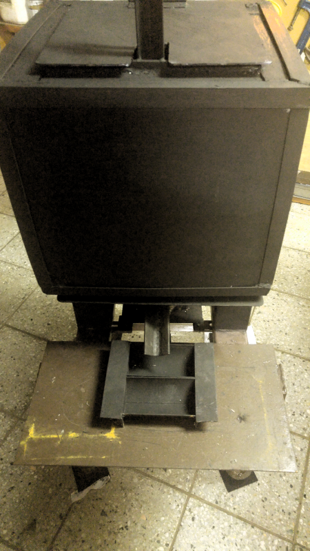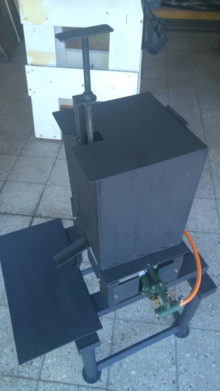 Made from heavy guage steel tube , because the volume capacity of the melter is 300 kg, or 660 pounds. I don't expect to ever fill it with molten lead, but even 150kg / 330 pounds is substantial and needs proper support.