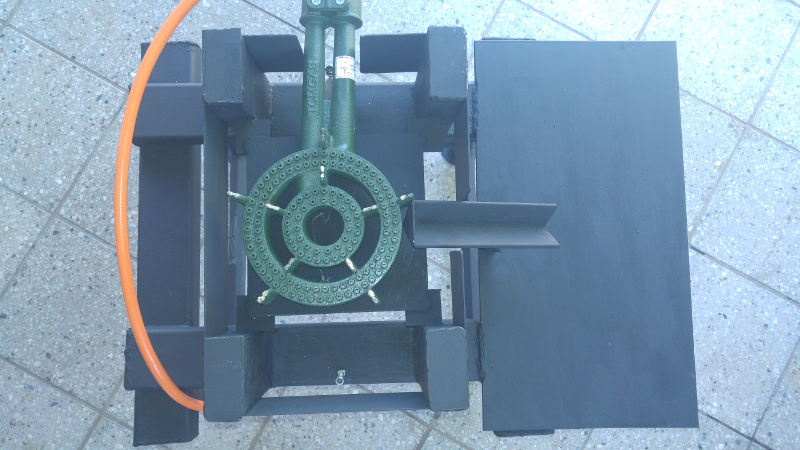 Being outdoors in the wind, the melter was cooling off as fast as it was heating, so I would need more heat, and as insurance, insulate the melter to prevent it losing heat. The burner also needed a wind shield.