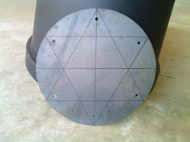 This plate is 250mm diameer in 4mm thick mild steel. The holes are 6mm, and correspond to the holes on the plastic base in the previous picture.