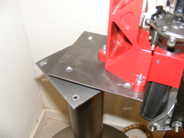 This shows the press with it's mount-plate being removed from the press stand. Note the plate below it which is the top of the stand,