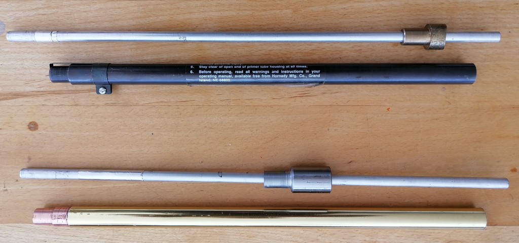 On top is the original primer tube housing, shown below a Lock-n-Load primer tube.