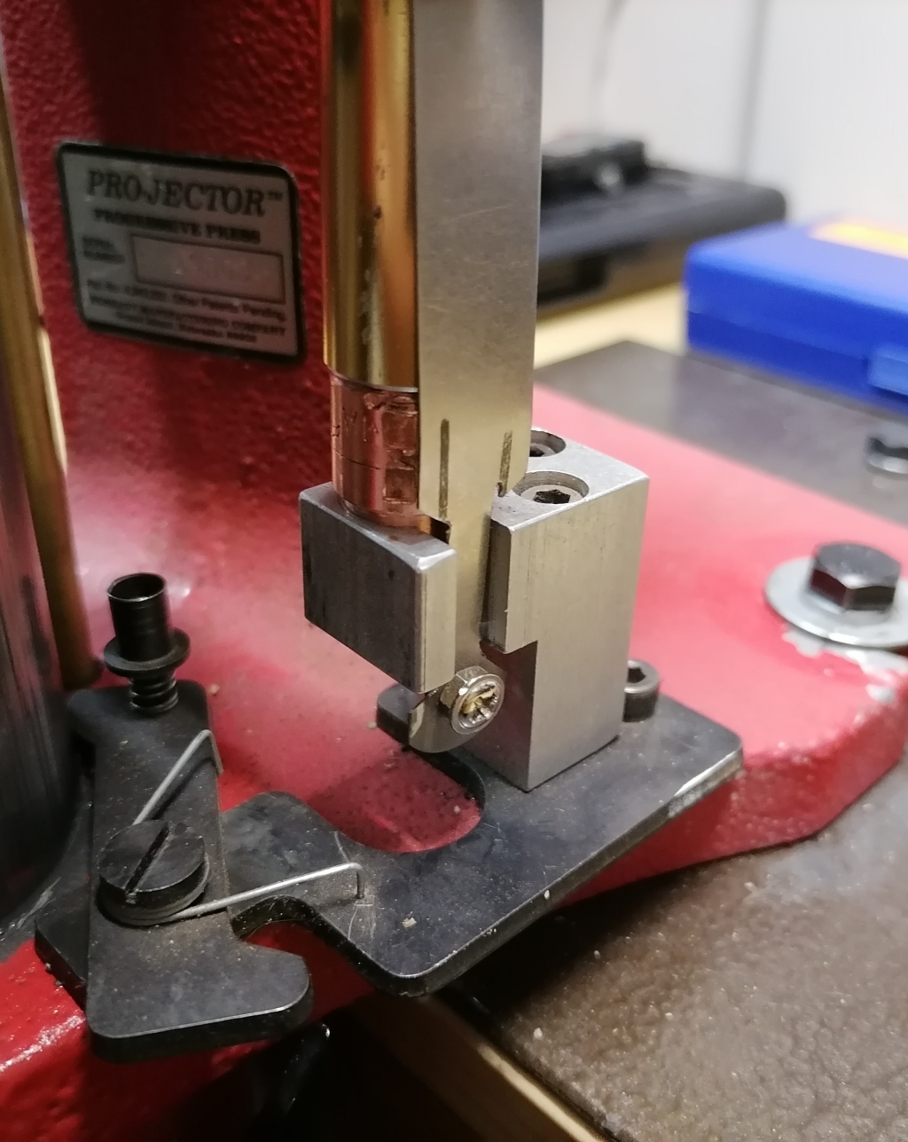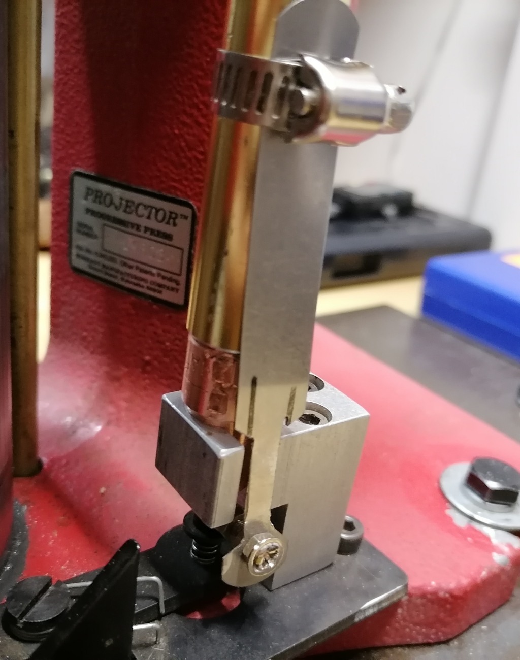 The top of the primer punch should be the same height as the top of the protrusion on the primer spring, and this is easily adjusted by loosening the hose clamp, sliding the primer spring into position, and tightening up again.