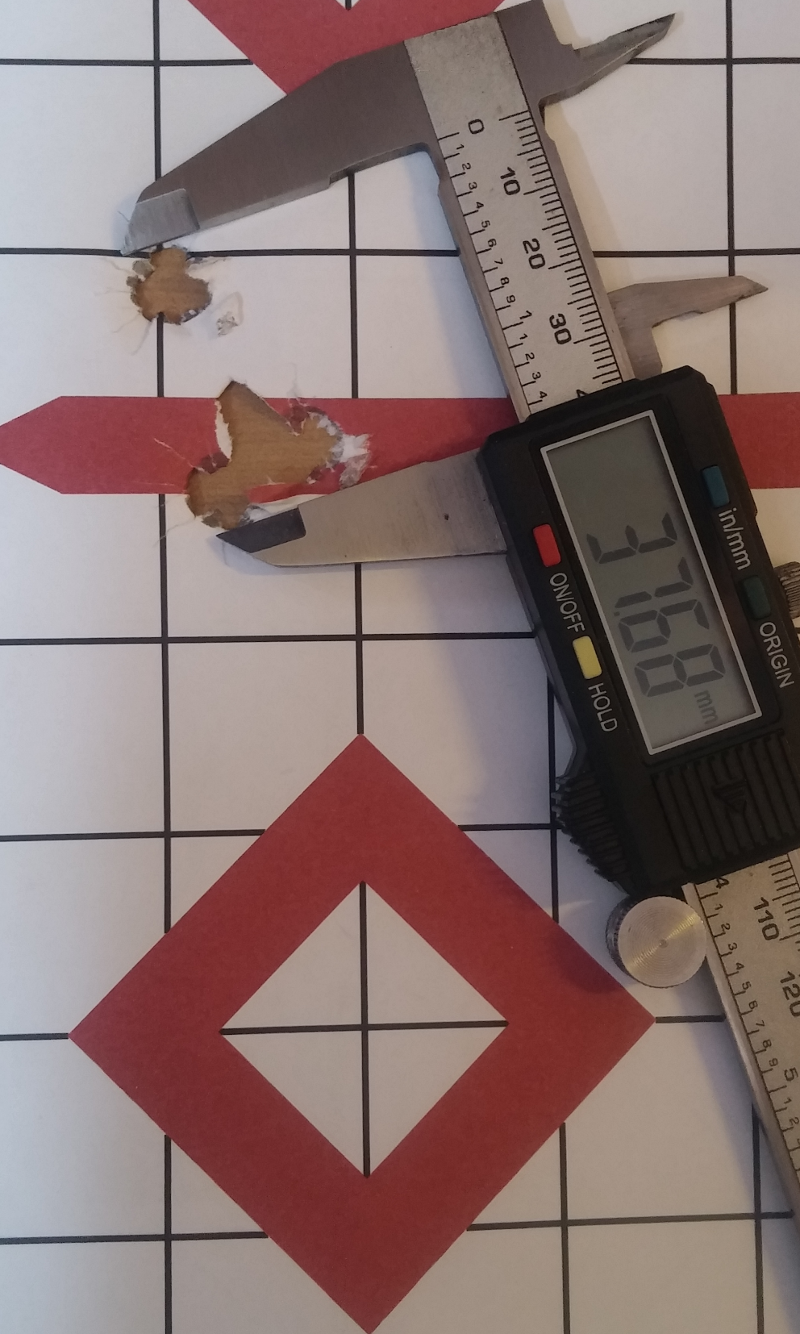 This is with the load using 81gr S335, velocity is 2850 fps, shooting to the zero point of the previous load.