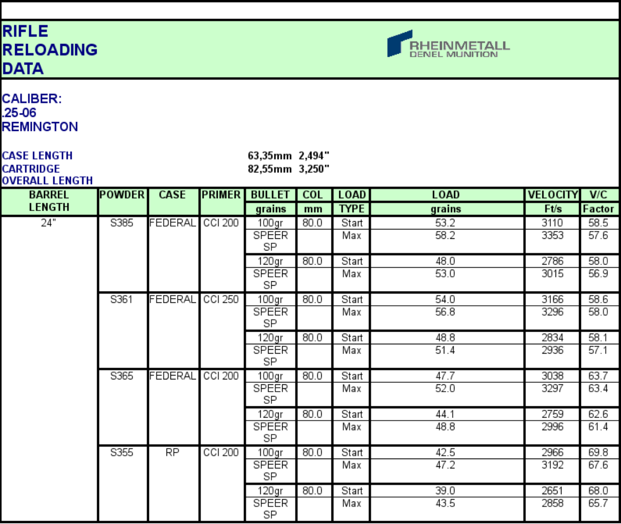 Somchem Rifle Reloading Data   .22 Hornet   .222 Remington   .223 Remington   .22-250-remington   .220 Swift   6mm Musgrave   6.5 x 55mm Swedish Mauser   6.5 x 57mm   .243 Winchester   .25-06 Remington   .264 Winchester   .270 Winchester   .308 Winchester   .30-06 Springfield   .300 H&H Magnum   .300 Winchester Magnum   .303 British   .375 H&H Magnum