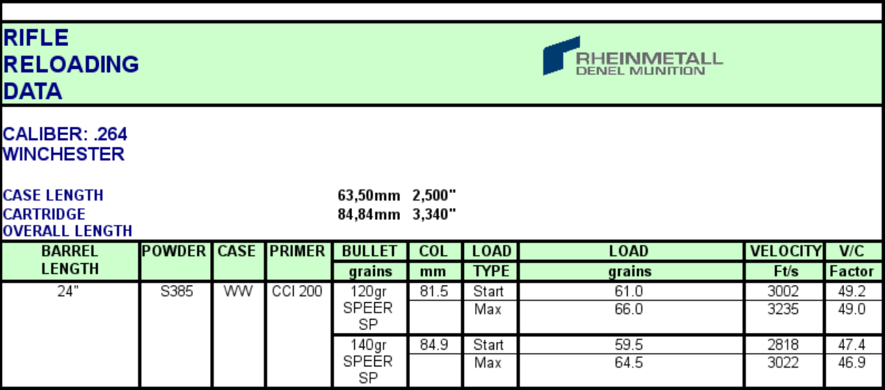 Somchem Rifle Reloading Data   .22 Hornet   .222 Remington   .223 Remington   .22-250-remington   .220 Swift   6mm Musgrave   6.5 x 55mm Swedish Mauser   6.5 x 57mm   .243 Winchester   .25-06 Remington   .264 Winchester   .270 Winchester   .308 Winchester   .30-06 Springfield   .300 H&H Magnum   .300 Winchester Magnum   .303 British   .375 H&H Magnum